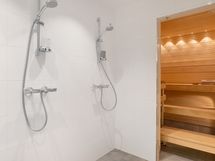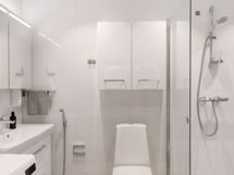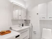 - Varusteet: Suihkuseinä, Pesukoneliitäntä, Lattialämmitys, WC, Suihku, Peilikaappi, Kiinteät valaisimet, Kylpyhuonekaapistot