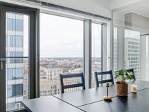 Näkymät huoneistosta/parvekkeelta: Kauniit näkymät viherhuoneesta Lumon tornitalon suuntaan. Keittiöstä ja makuuhuoneista avarat näkymät pohjoiseen Arabianrantaan ja Vanhankaupunginselälle.