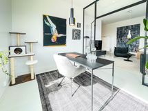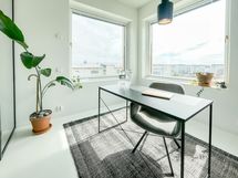 Asunnossa on kaksi monipuolista makuuhuonetta. Lasiovellinen huone tulvii valoa ja sopii täydellisesti työhuoneeksi, luovaksi tilaksi tai rauhalliseksi lukunurkkaukseksi. Toinen makuuhuone tarjoaa muuntautumiskykyä niin perheenjäsenelle, kotitoimistolle kuin harrastehuoneellekin.