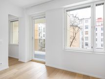 - Kulmahuoneisto, josta näkymä korttelimaiselle sisäpihalle sekä etelään merelliseen Hietalahdenrantaan.