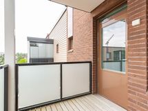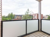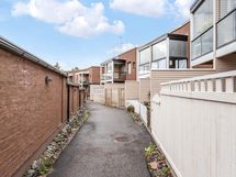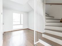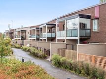 Kaksitasoinen, avara kolmio tarjoaa toimivan ja modernin lämminhenkisen kodin. Sisäänkäynnin yhteydessä on erillinen käytännöllinen eteinen. Keittiö ja olohuone jakautuu kahdeksi eri tilaksi ja olohuoneesta on käynti terassipihalle. Yläkerrassa on kaksi makuuhuonetta, joista toisen yhteydessä on oma parveke. Myös viihtyisä saunatila sijaitsee yläkerrassa. Talon yhteisistä tiloissa löytyy asunnolle lämmin varasto. Autokatospaikka on varattavissa.