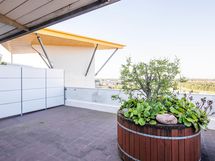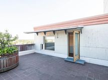 Harvinainen helmi arkkitehtuurillisesti tunnetusta terassitalosta – kahden kerroksen koti ylimmässä kerroksessa