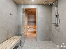 Kylpyhuoneessa on sähköinen mukavuuslattialämmitys.