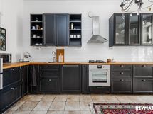 - Keittiön varusteet: Jääkaappipakastin, uuni, liesi, liesituuletin ja astianpesukone. Liesi: Kaasuliesi. Työtason materiaali: Puu.