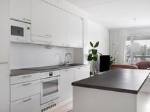 - Kaapistot, jääkaappi, pakastin, astianpesukone, erillisuuni- ja liesitaso (induktio), mikroaaltouuni