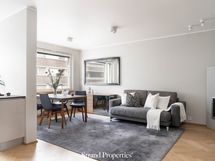 Welcome to this stunning, stylishly renovated apartment located in the most prestigious neighborhood in Helsinki, in the heart of Ullanlinna on Pietarinkatu. This apartment is the perfect combination of tranquil luxury and modern living comfort.