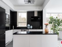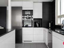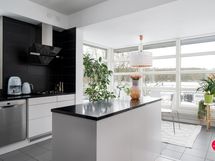 - Keittiön varusteet: Jääkaappipakastin (Samsung), erillisuuni (Bosch), liesi (Bosch -kaasuliesi), astianpesukone (Bosch), liesituuletin (Thermex mini preston 2), mikroaaltouuni (Bosch) ja keittiösaareke. Liesi: Kaasuliesi. Työtason materiaali: Kivitaso. Uutta vastaava - 2022 uusittu - valoisa ja modernin tyylikäs saarekkeellinen avokeittiö jossa on hyvin säilytys- ja työtilaa.