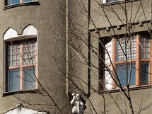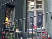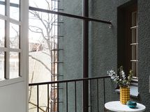 Parveke avautuu kauniille, taloyhtiön yksityiselle sisäpihalle.
