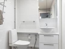- Pesutilojen varusteet: WC-istuin, suihku, bidee-suihku, lattialämmitys, peilikaappi, pesuallas, allaskaappi ja pyyhekuivain. Pesutilojen kuvaus: Kylpyhuone remontoitu 2019. Erillisten WC:n lukumäärä: 1. Erillisen WC:n varusteet: WC-istuin, bidee-suihku, peilikaappi, pesuallas, allaskaappi, pesukoneliitäntä ja lattiakaivo.