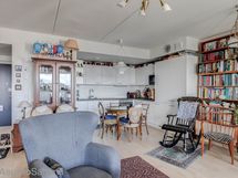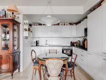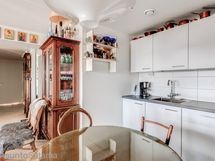 - Keittiön varusteet: Jääkaappipakastin, jää-viileäkaappi, uuni, liesi, liesituuletin, mikroaaltouuni ja astianpesukone. Liesi: Keraaminen liesi. Työtason materiaali: Laminaatti. Vaaleasävyinen avokeittiö.