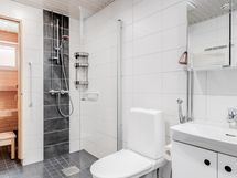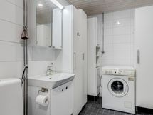 - Pesutilojen varusteet: WC-istuin, suihku, suihkuseinä, pesukoneliitäntä, lattialämmitys, peilikaappi, pesuallas ja bidee-suihku. Pesutilojen kuvaus: Tilava kph. Erillisen WC:n varusteet: WC-istuin, pesuallas, peilikaappi ja bidee-suihku.