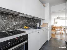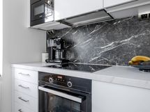 - Keittiön varusteet: Jääkaappipakastin (2022 integroitu), erillisuuni (2022), liesi (2022), liesituuletin (2022), astianpesukone (2022 integroitu) ja kuivaava pesukone. Liesi: Induktioliesi. Työtason materiaali: Laminaatti. Noblessa keittiö 2022.