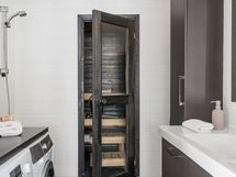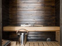 - Kuvaus: Varustus: sähkökiuas, lauteet. Seinät: puu. Lattia: kaakeli. .