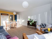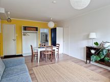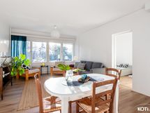 - Pesutilojen kuvaus: Ikkunallinen kylpyhuone remontoitu osakkaan kustannuksella taloyhtiön toimesta linjasaneerauksen yhteydessä 2019, myös oviaukko levennetty. Kuivauspatteri. Varustus: suihkuseinä (kääntyvät suihkuovet), pesukone, pesukoneliitäntä, lattialämmitys, wc-istuin, suihku, peili, kiinteät valaisimet (Domus Classica, yleisvalaisin SOL), kylpyhuonekaapisto (Temal pyykkikappi, korkea kiilto, valkoinen). Lattia: laatta. Seinät: kaakeli.