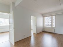 Viidennen kerroksen kolmio kahdella makuuhuoneella, saunalla ja parvekkeella. Huoneistoon on juuri valmistunut kylpyhuoneremontti.