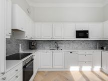 - Keittiön varusteet: Jääkaappipakastin (2022), liesituuletin (2021), mikroaaltouuni (2021), astianpesukone (2022), liesi (2022) ja uuni (2021). Liesi: Induktioliesi. Keittiö uusittu 2022. Kauniit Topi -keittiökalusteet ovat kotimaiset, kestävät ja laadukkaat. Keittiön taso on ylämaan graniitin kvartsia ja keittiön välilaatat Carrara Bianca -marmoria.