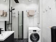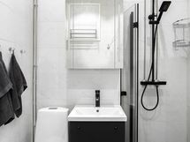 - Pesutilojen varusteet: WC-istuin, suihku, suihkuseinä, pesukoneliitäntä, peilikaappi, pesuallas, allaskaappi ja sadesuihku. Pesutilojen kuvaus: Tyylikäs kylpyhuone uusittu edellisen osakkaan aikana vuonna 2021.