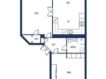- Lisätietoja säilytystiloista: Olohuoneessa tilava vaatehuone (entinen toinen sisäänkäynti).