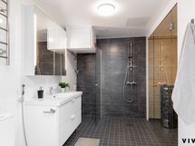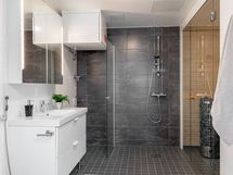 - Pesutilojen varusteet: WC-istuin, suihku, lattialämmitys, pesukoneliitäntä, peilikaappi, pesuallas ja allaskaappi. Erillisten WC:n lukumäärä: 1. Erillisen WC:n varusteet: WC-istuin, pesuallas ja peili.