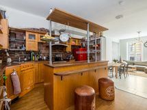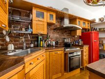 - Keittiön varusteet: Jääkaappi (x 2), erillinen pakastin, erillisuuni (Siemens), liesi (Smeg), liesituuletin, astianpesukone (Grundig) ja keittiösaareke. Liesi: Kaasuliesi. Työtason materiaali: Puu.