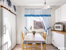 - Keittiön varusteet: Uuni, astianpesukone, liesituuletin, jääkaappi ja erillinen pakastin. Liesi: Keraaminen liesi. Työtason materiaali: Puu.