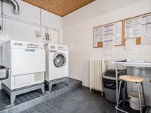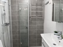 - Suihku, Suihkuseinä, Pesukonevalmius, Peilikaappi, Allaskaappi, Laattalattia, Laattaseinä, Lattialämmitys