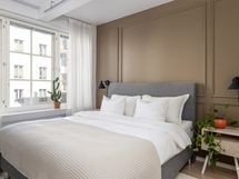 Huoneiston läpitalon pohjaratkaisu ja suuret ikkunat tekevät tiloista poikkeuksellisen valoisat ja avarat. Ajattoman tyylikkäät materiaalivalinnat ja viimeistellyt yksityiskohdat luovat ylellisen kokonaisuuden. Keittiö sulautuu saumattomasti avaraan oleskelutilaan, josta avautuvat upeat näkymät Bulevardille ja Aleksanterinteatterille. Mikäli tarvitset enemmän makuuhuoneita, on mahdollista lisätä kolmas makuuhuone ruokailutilan kohdalle.