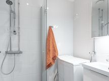 - Pesutilojen varusteet: Pesukoneliitäntä, peilikaappi, pesuallas, bidee-suihku, allaskaappi, lattialämmitys, suihku, wc-istuin ja suihkuseinä.