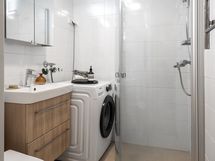 - Pesutilojen varusteet: WC-istuin, suihku, peilikaappi, pesukoneliitäntä ja pesuallas. Pesutilojen kuvaus: 2024 osittainen Nano-käsittely ja silikonisaumat uudistettu, Vevex oy.