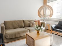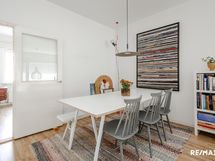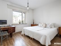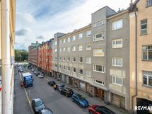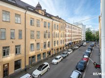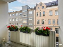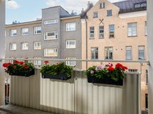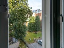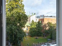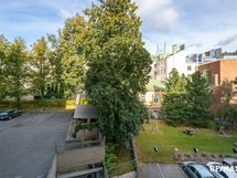 - Parvekeelta katunäkymä etelään Vuorimiehenkadulle, keittiöstä ja makuuhuoneesta pihanäkymä pohjoiseen