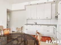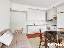 - Keittiön varusteet: Jääkaappipakastin, uuni, liesi, astianpesukone ja liesituuletin. Työtason materiaali: Laminaatti.
