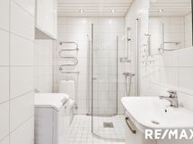 - Pesutilojen varusteet: Suihku, wc-istuin, peilikaappi, pesuallas, allaskaappi, bidee-suihku, lattialämmitys, pesukoneliitäntä, suihkuseinä ja pyyhekuivain.