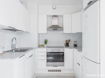 - Vasta "sisäänajettu" keittiö (2022-23), jossa hyvin kaappi- ja laskutilaa, jääkaappipakastin, astianpesukone, induktiotaso, kalusteuuni, liesisuodatin. paikka mikrolle, välitilassa sisustuslevy, laminaattitasot, seinät maalattu, laminaattilattia (2023).
