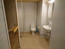 - Suihkuseinä, Suihku, Pesukonevalmius, Peilikaappi, Laattalattia, Laattaseinä, Lattialämmitys