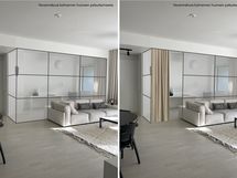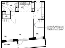 • Avara olohuone, johon avattu toinen makuuhuone – helppo palauttaa alkuperäiseen (suunnitelmat ja tarjous valmiina, yhtiöjärjestyksen mukaisesti kolmio)
