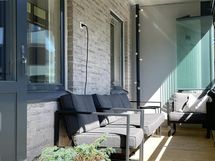 • Lasitettu, suuri ja aurinkoinen parveke toimii lisähuoneena keväästä pitkälle syksyyn, tilaa sohvaryhmälle, nojatuoleille ja ruokailuryhmälle