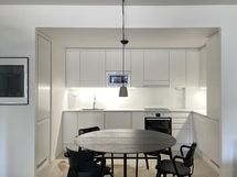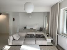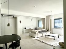 Vuonna 2017 valmistunut huoneisto tarjoaa laatua ja mukavuutta: keittiö kvartsitasoin ja integroiduin konein, vaalea tammiparketti, tilava kylpyhuone ja oma sauna. Kaikki materiaalit on valittu sisustusarkkitehdin toimesta. Huoneisto on juuri maalattu ja valaistusta uusittu.