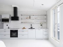 - Liesi: induktio, erillisuuni. Työtasot: muu. Kylmäsäilytys: jääkaappi, pakastin. Varustus: mikroaaltouuni, astianpesukone, kiinteät valaisimet, liesituuletin / suodatin. Keittiön taso: kvartsi, Silestone White Storm.