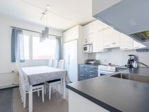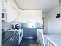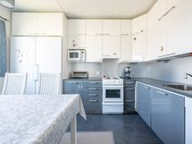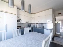 - Keittiön varusteet: Astianpesukone, liesi, jääkaappi ja erillinen pakastin. Liesi: Sähköliesi. Työtason materiaali: Laminaatti.