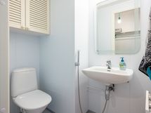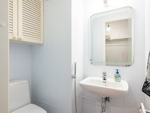 - Pesutilojen varusteet: WC-istuin, pesukoneliitäntä, allaskaappi ja bidee-suihku. Erillisten WC:n lukumäärä: 1. Erillisen WC:n varusteet: WC-istuin, bidee-suihku, allaskaappi ja peili.