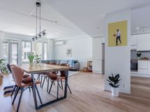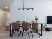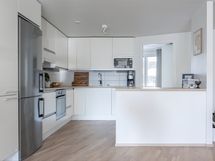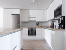 - Liesi: induktio, erillisuuni. Työtasot: laminaatti. Kylmäsäilytys: jääkaappi/pakastin. Varustus: liesikupu, mikroaaltouuni, astianpesukone.