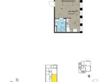 Upea uniikki yksiö C42. Huonekorkeus n. 3.3 m. Isot ikkunat.