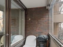 - Iso parveke, Lasitettu parveke, n. 7m2. Mittatilaustyönä tehty puiset rallit parvekkeen lattiaan.