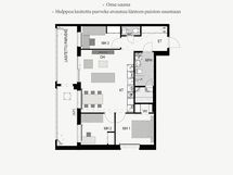 Huomaathan, että ilmoituksen kuvat ovat visualisointeja eivätkä välttämättä vastaa juuri tämän asunnon pohjakuvaa.