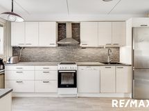 - Keittiön varusteet: Uuni, jääkaappipakastin, astianpesukone ja liesituuletin. Työtason materiaali: Laminaatti.