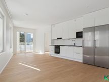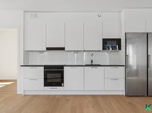 - Induktioliesi, erillisuuni, jääkaappi/pakastin, astianpesukone(integroitu), mikroaaltouuni( integroitu),pöytätaso on kvartsikiveä, johon on kiinnitetty 1-altainen allas