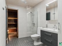 - Peilikaappi, suihku, kylpyhuonekaapisto, kiinteät valaisimet, sauna