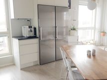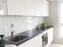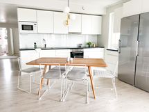 - Tilaa isolle ruokapöydälle, Paljon kaappitilaa, Paljon työskentelytilaa, Halogeenivalot, Laminaattitasot, Integroidut koneet, Astianpesukone, induktioliesi, Liesikupu, Jääkaappi, Pakastin,