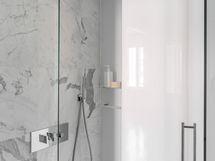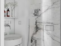 Varustus: wc-istuin, bidee-suihku, allas/allaskaappi, peili, marmorihylly.