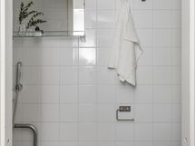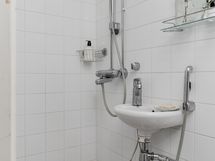 - Pesutilojen kuvaus: Laatoitettu kph, jossa suihku alas , peili ja wc-istuin.